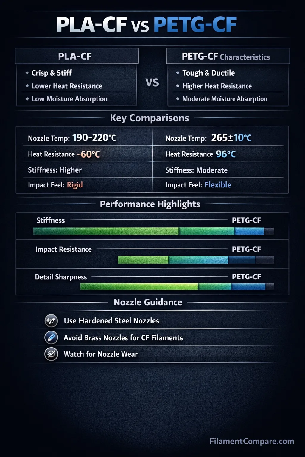 | Attribute | PLA-CF | PETG-CF | What This Usually Means |